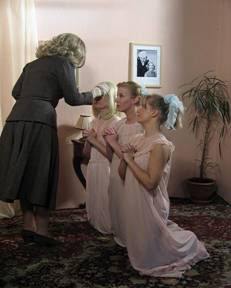 Nu var det ju så att fader Ekblad inte varit helt säker på vilken strumpa som var Theresas när han lade ner Kinsey-rapporten föregående kväll. Därför hade han stoppat ner svarta spetsunderkläder och en präktig dildo i de båda andra systrarnas strumpor.